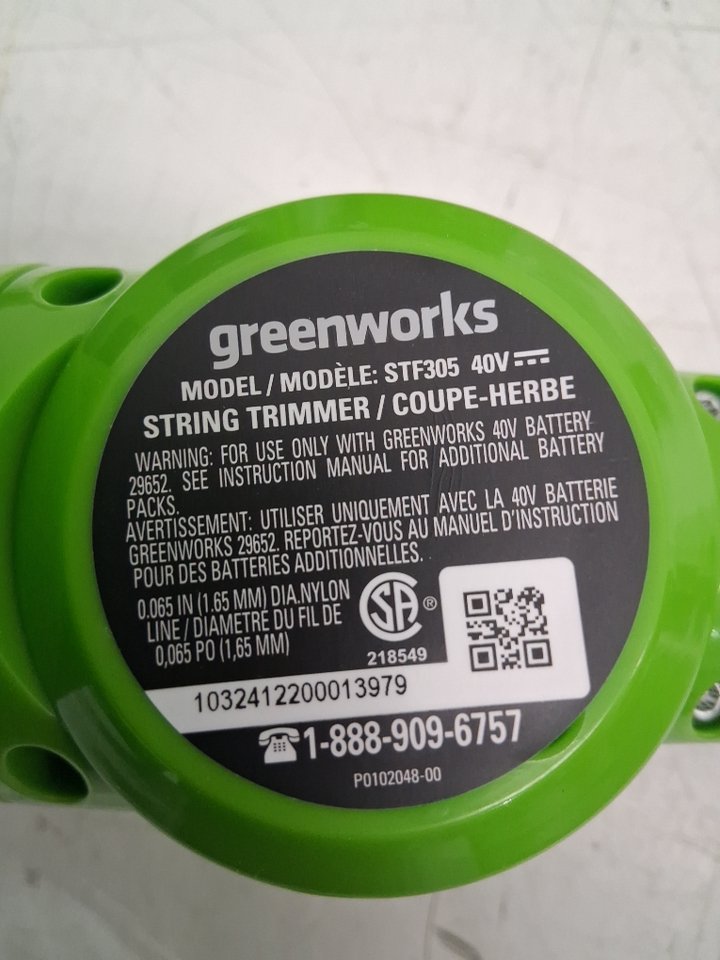 GREENWORKS LITHIUM ION CORDLESS STRING LAWN TRIMMER - 40V - 13" String - GREEN (MODEL: STF305)