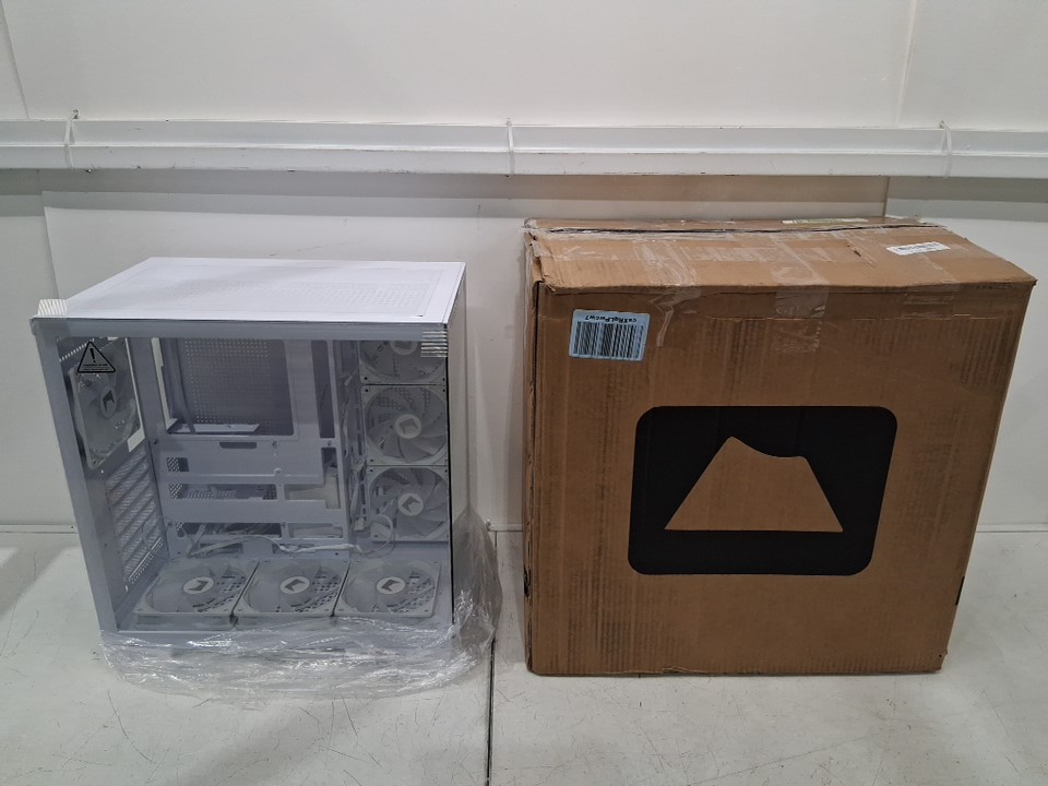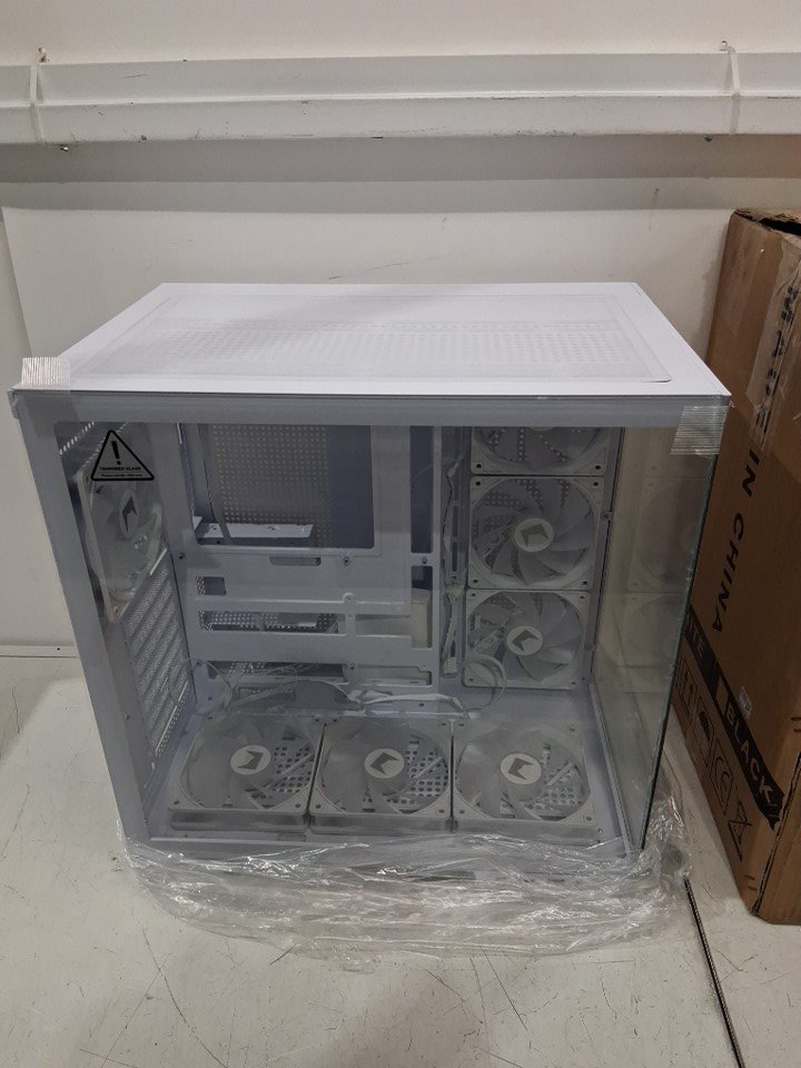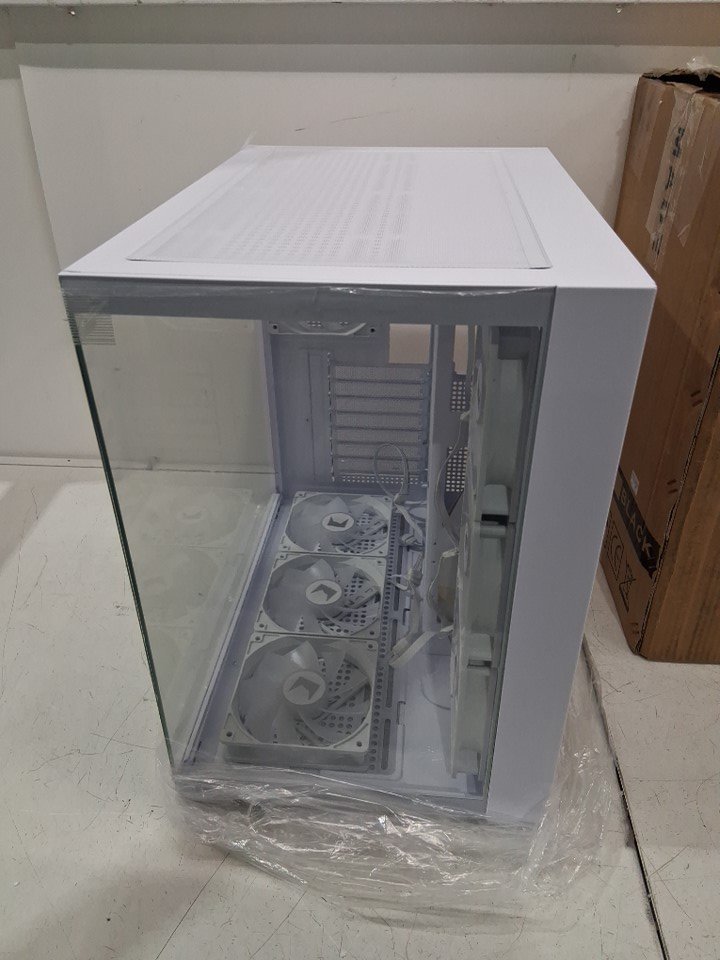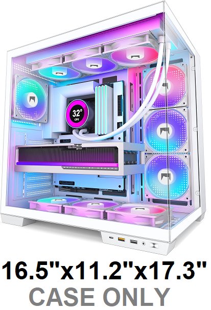 HYXN ATX Dual Cavity Mid-Tower PC Gaming Case, Pre-Installed with 7 PWM ARGB Fans - 16.5" x 11.2" x 17.3" - white (model: h1)