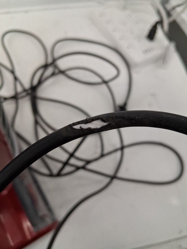 There are 2 light scratches in the plastic of the dust compartment, and a small rip in the exterior of the power cord, though the wires themselves are not damaged. Additionally, some dust and debris on the bottom brush and some of the accessories indicates some previous use - see photos. Outside of these issues, appears to be in good condition and function normally.