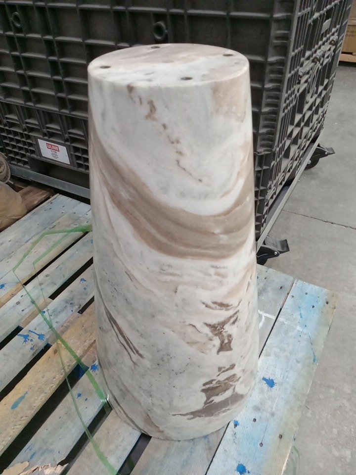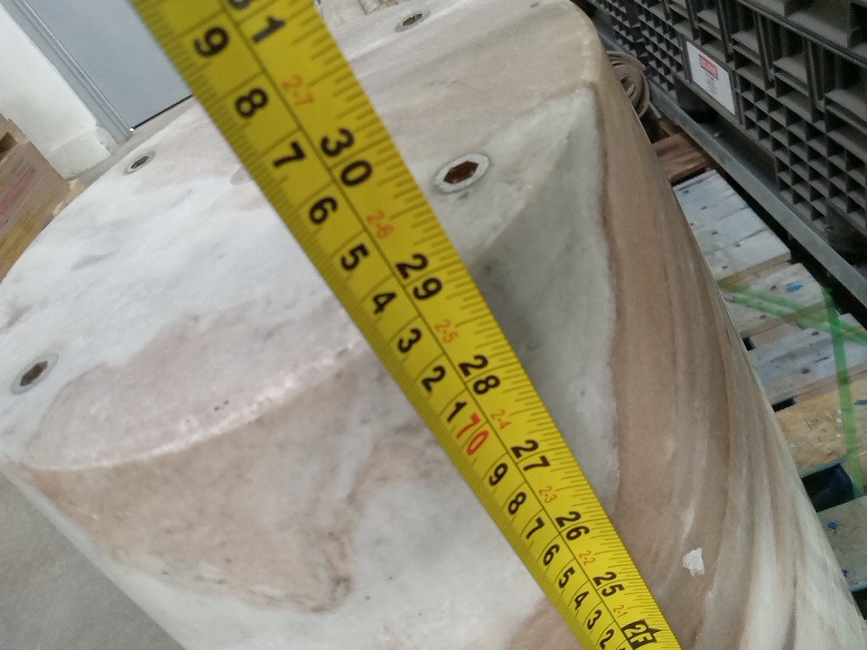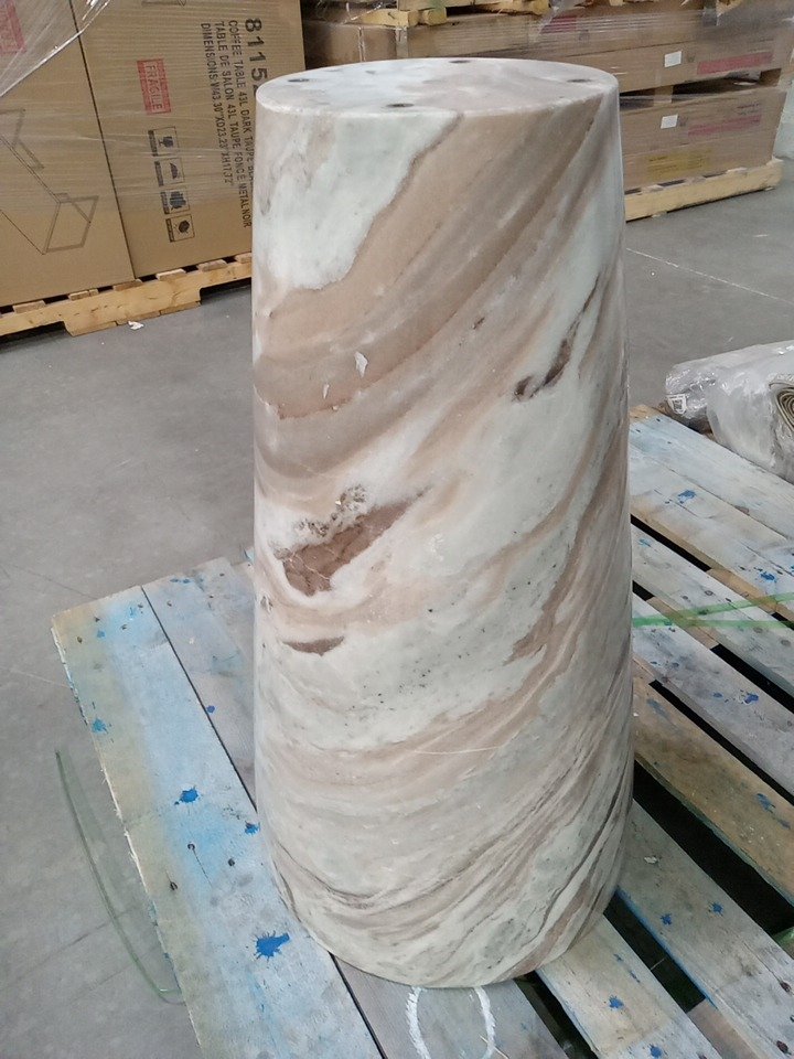 Item appears new, however there is dirt and some chipping/damage present at the bottom of the base from loose shipping/storage. *please note round table top is not included* This item is very heavy please bring appropriate help and vehicle at the time of pick up.