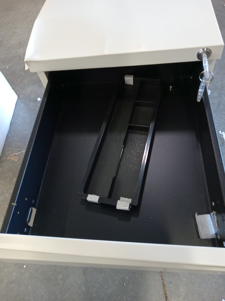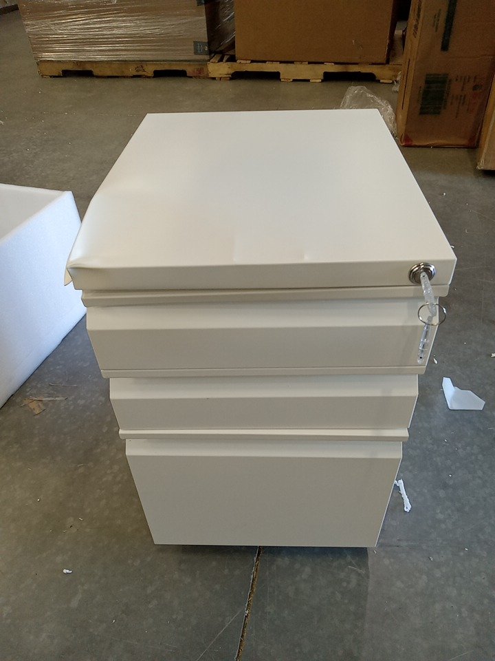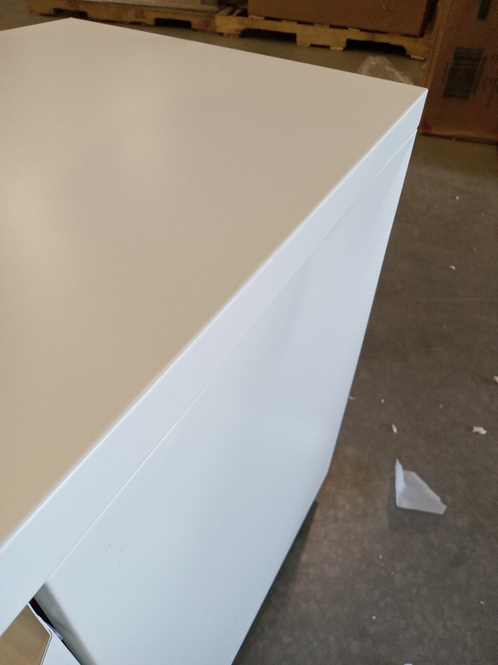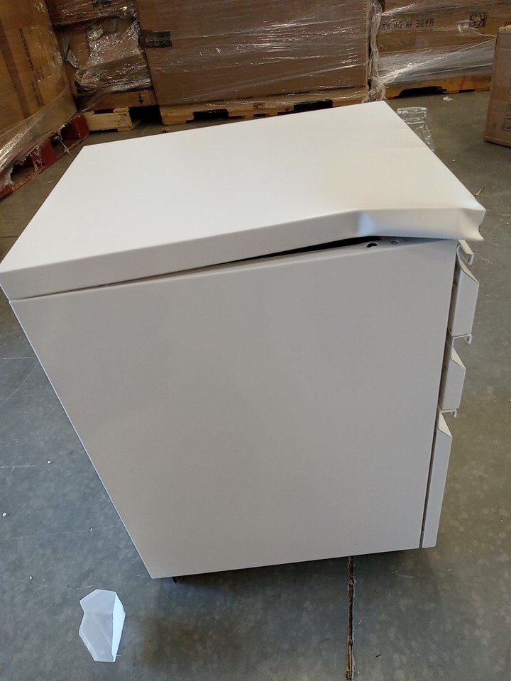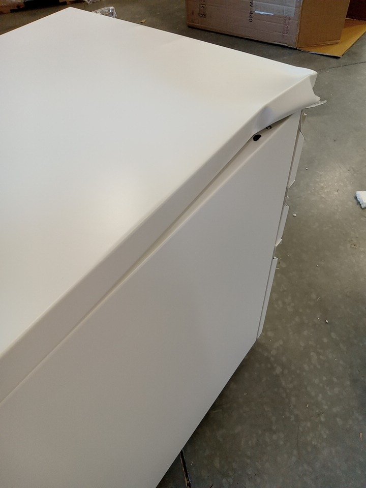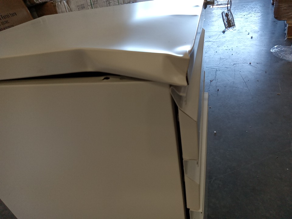 Item is dents/indents allover the body due to shipping/handling. However all the drawers work fine.