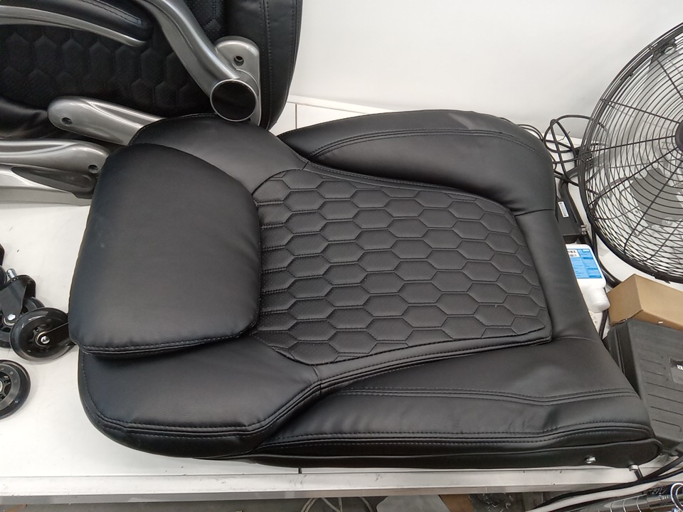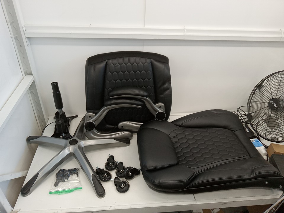 This chair has been previously assembled, as shown by a few light scratches on the metal frame and minor dirt on the fabric upholstery from prior handling. Please note that the generic hardware may need to be sourced separately to complete assembly.