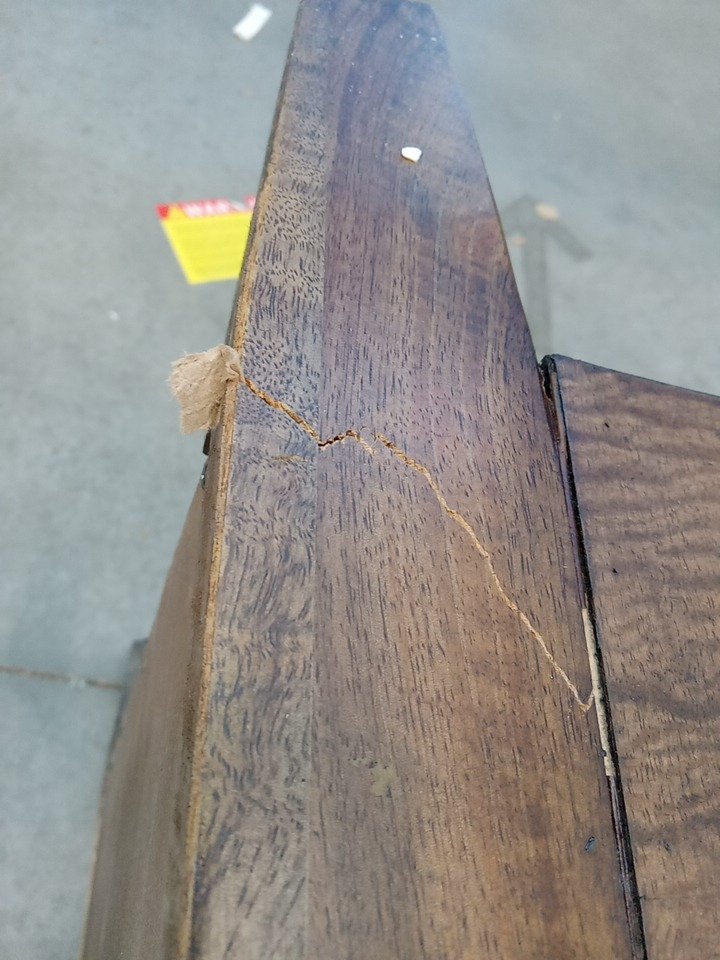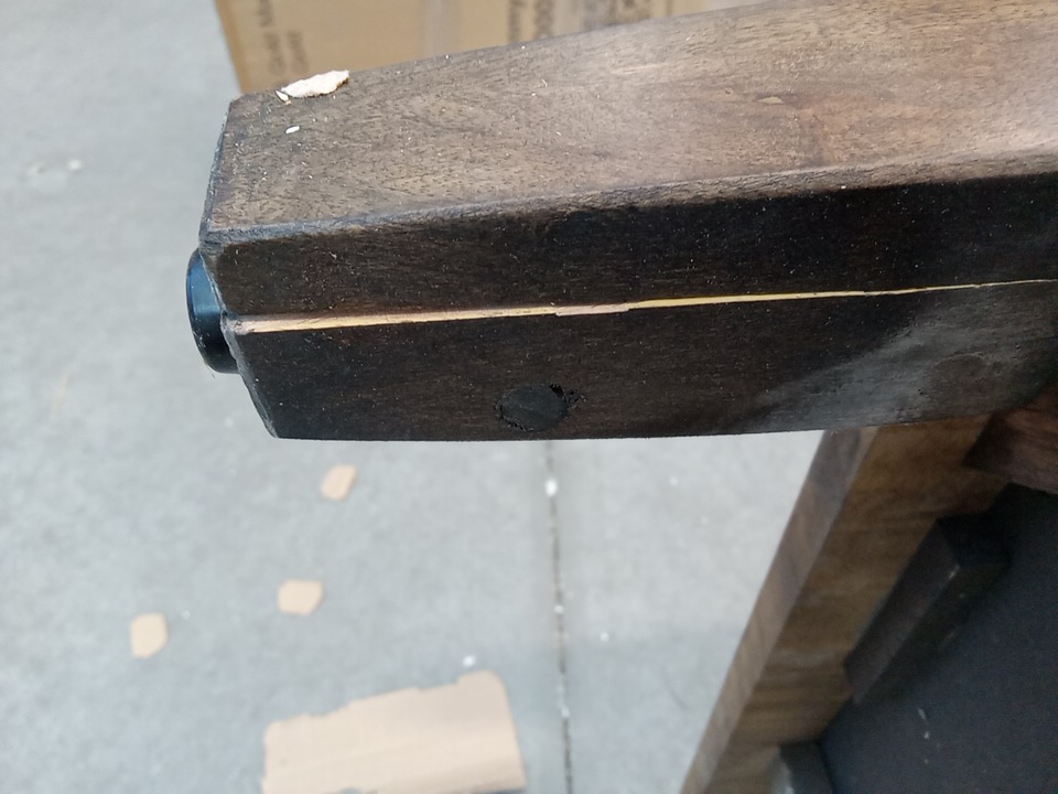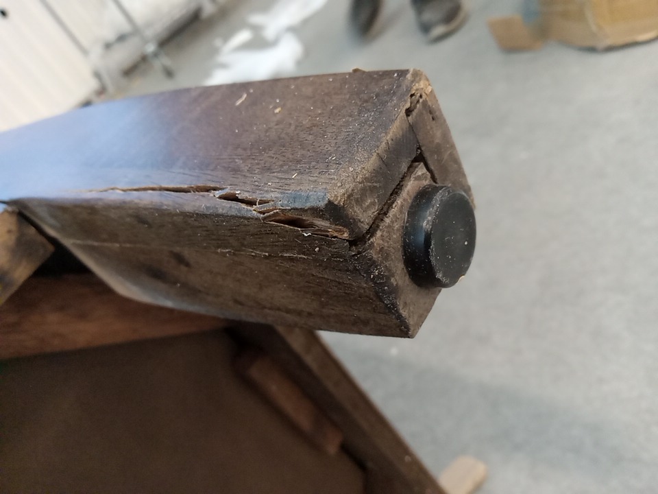 their are some cracks, splits, fraying and scuffs on this item, this seems to be due to shipping and handling, while this item is able to stand without issue, the wooden legs are cracked / split, meaning this item may have issue with holding weight, we strongly recommend that the user refrains from putting too much weight on this table as it could damage the table or even cause harm / danger to the user. see photos below.