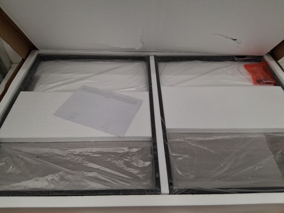 Please note that the item arrived sealed at our facility and was opened to check the condition due to some damage to the shipping box. The damage - See Photos - only got to the first layer of styrofoam