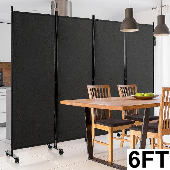 Costway 4-Panel Folding Room Divider Rolling Privacy Screen - 6FT - Black - (Model: JV10724BK)