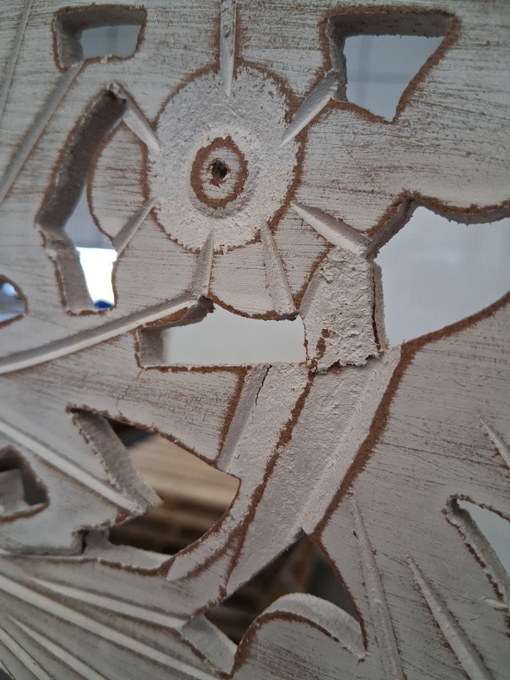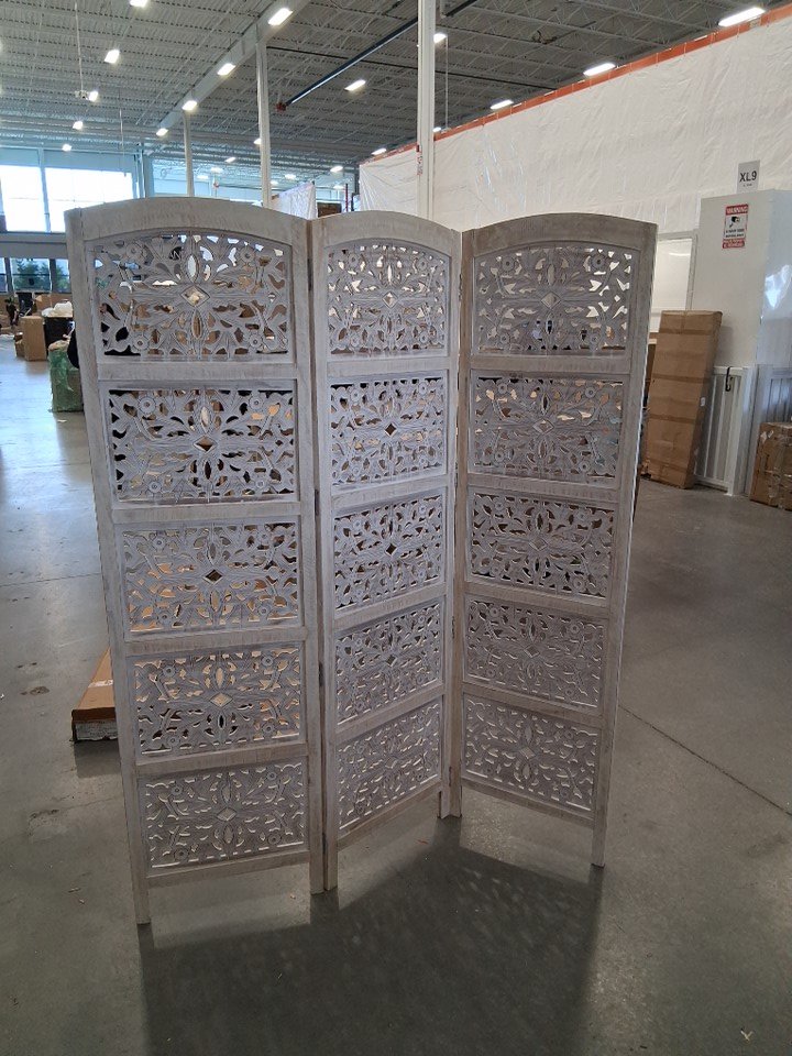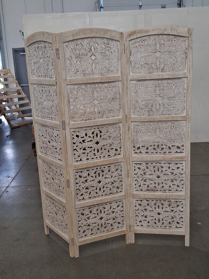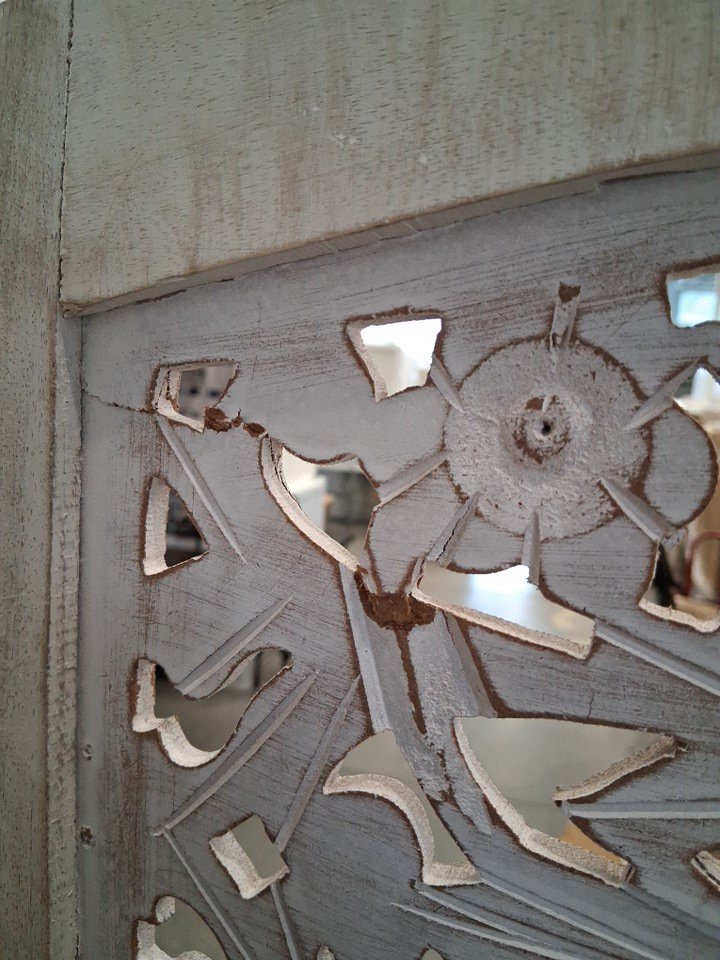 There is a small crack in the wood in the top section of one of the panels - see photos.