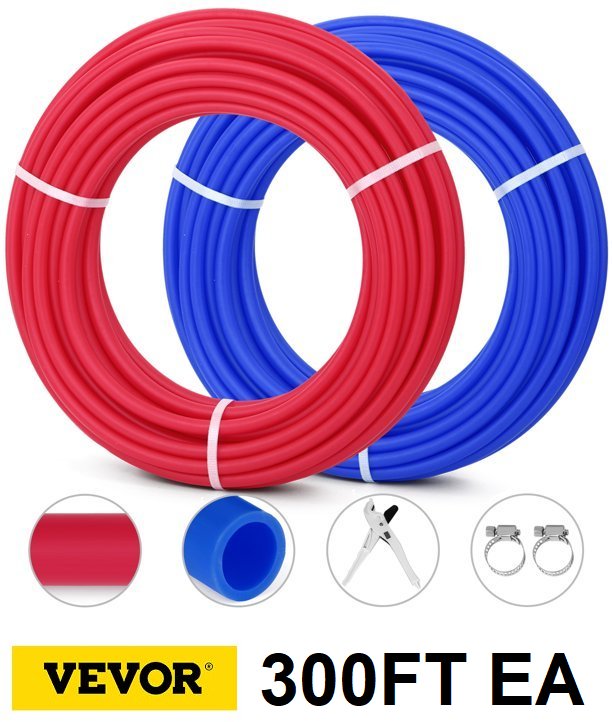 VEVOR PEX TUBING PLUMBING HOT OR COLD TUBE - 1/2 " x 300FT EACH - RED/BLUE