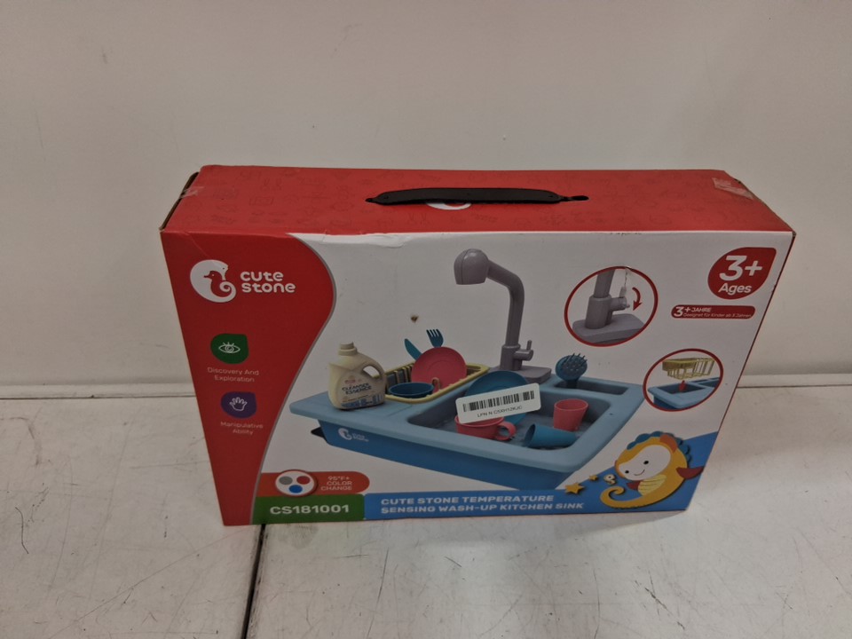 CUTE STONE KIDS PRETEND PLAY KITCHEN SINK TOYS WITH TEMPERATURE SENSING /CHANGING DISHES
