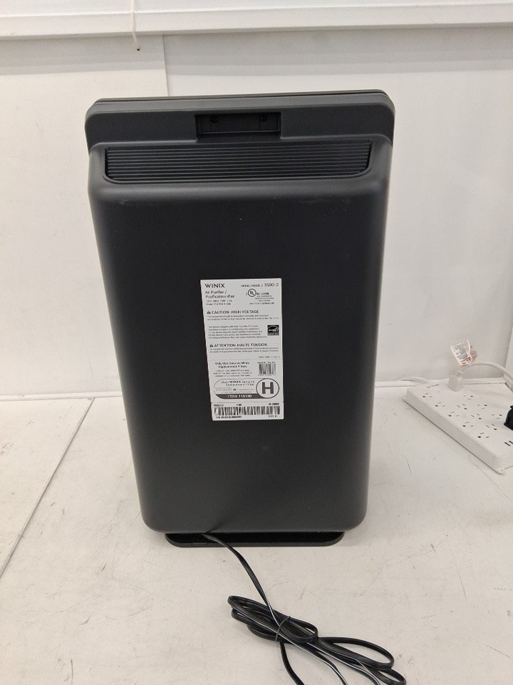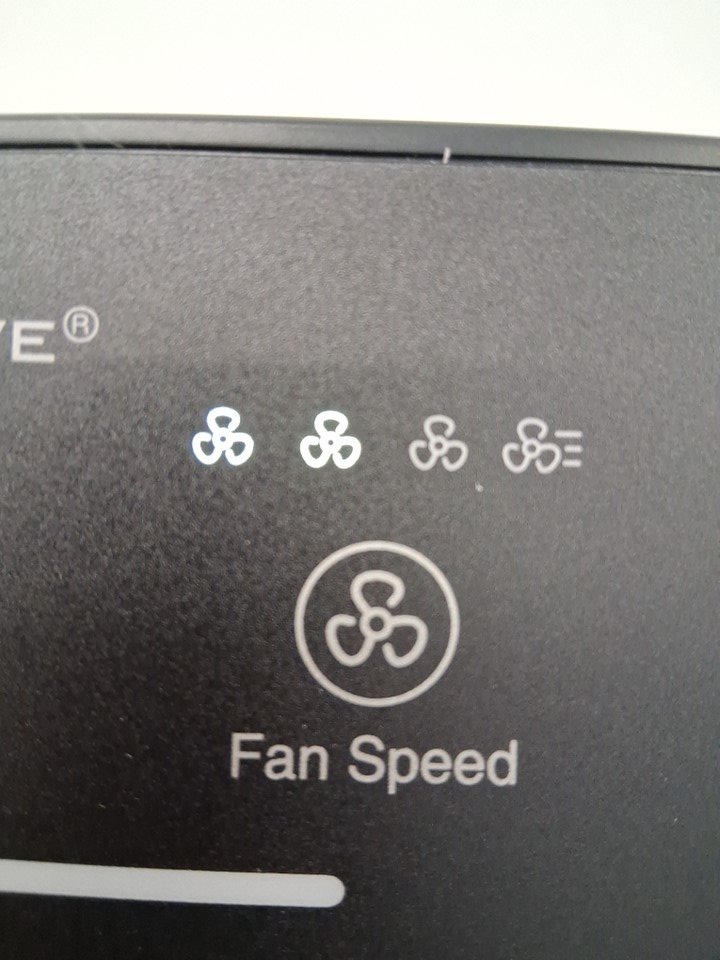 When plugged in, shows an error of two blinking lights on the fan speed indicator, meaning that the fan is unable to spin up. This could be the result a mechanical defect, or simply something stuck in the fan preventing it from starting, but the machinery would need to be opened up in order to verify the issue. Appears unused otherwise - see photos.