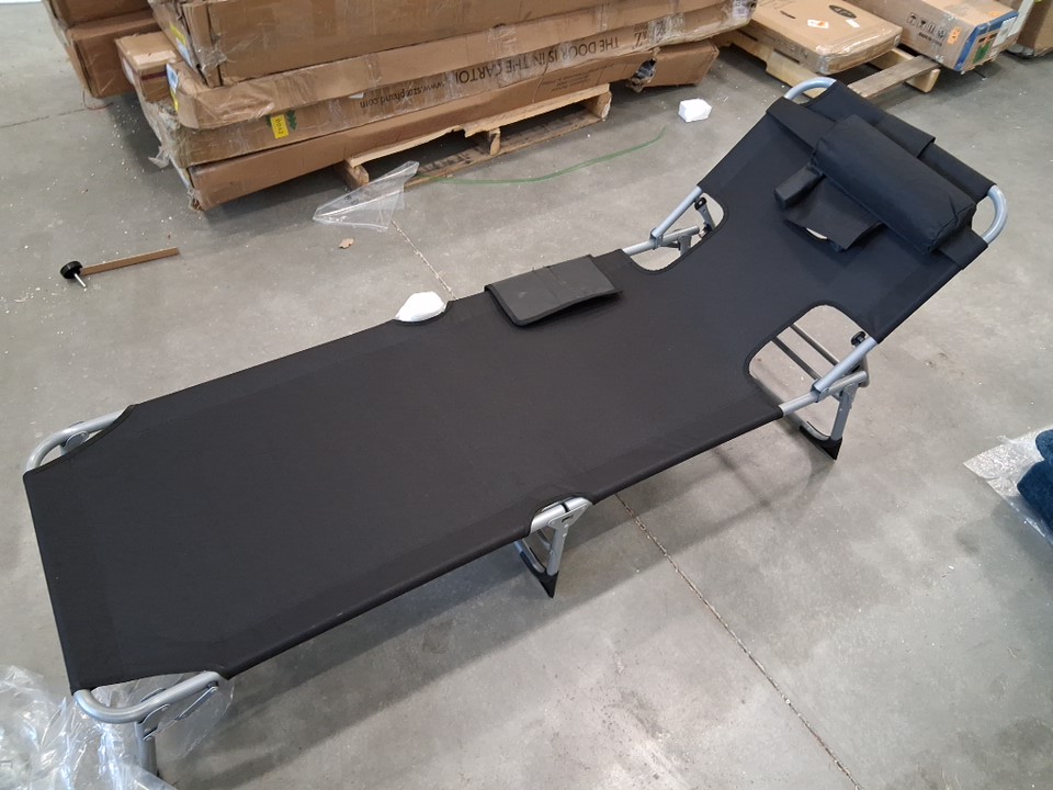 GYMAX / COSTWAY OUTDOOR FOLDING BEACH CAMPING TANNING CHAIR COT WITH FACE/ARM HOLE, SIDE POCKET, AND REMOVABLE PILLOW - 76" x 23.5" x 12.5" - black - (MODEL: NP10025bk)