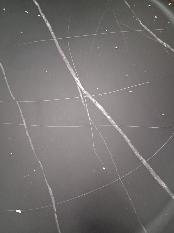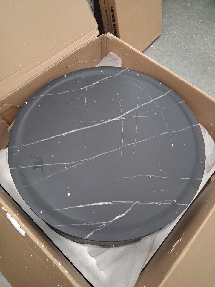 There are some thin scratches in the surface of the table (not part of the marble design) - see photos.