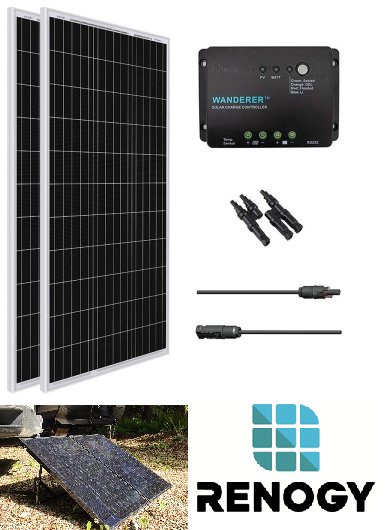 RENOGY MONOCRYSTALLINE SOLAR PANEL KIT - 12v - 200W - black(MODEL: RNG-KIT-BUNDLE200D-WND30)