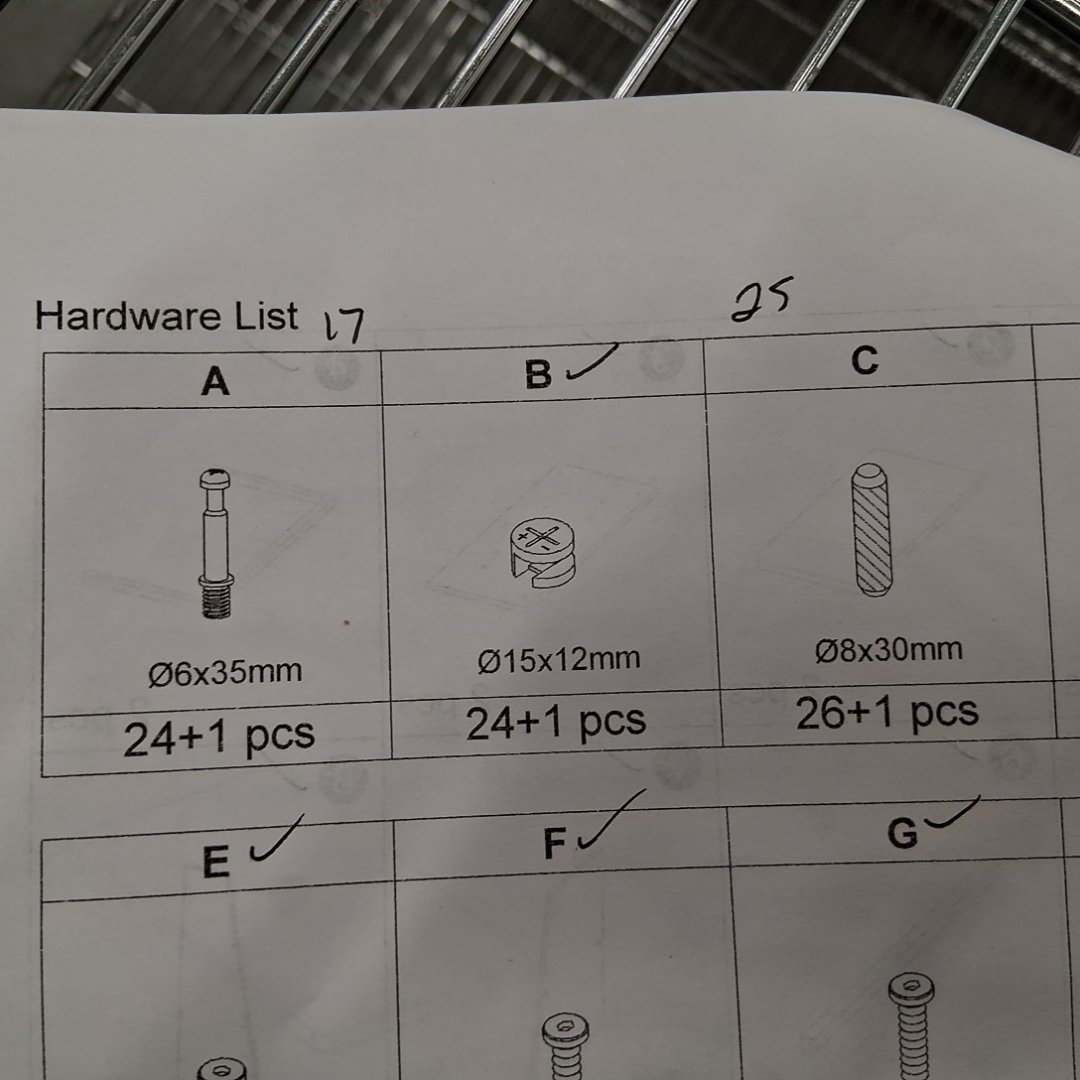 There are small chips in the paint on the leg pieces. Some generic hardware is missing. (see photos)