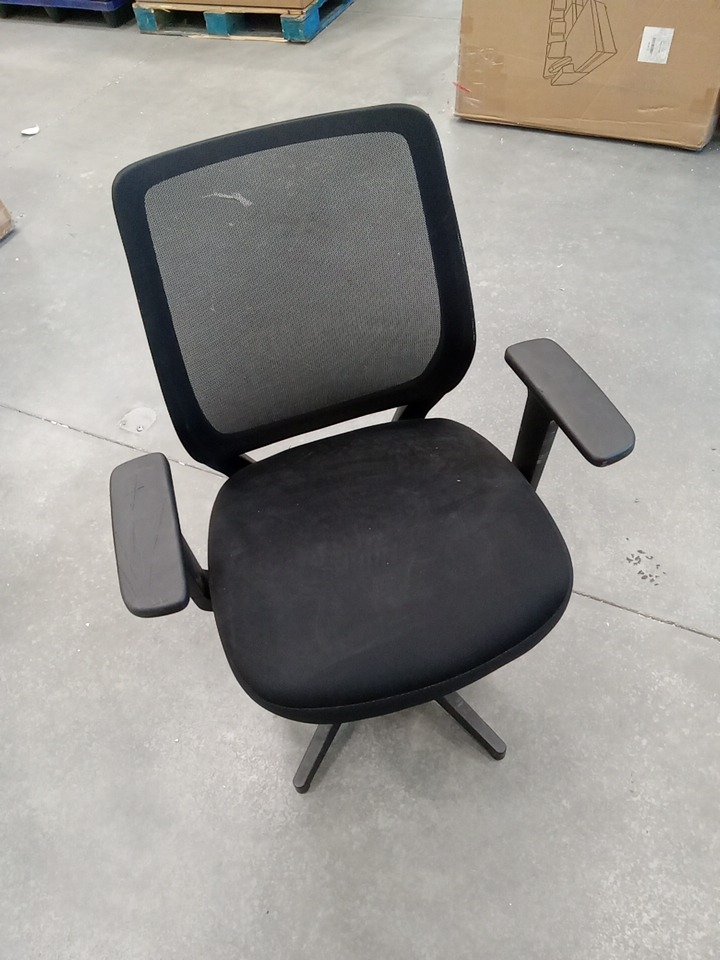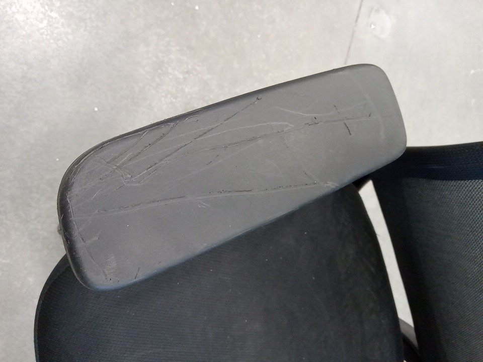 Chair is missing wheels, deep scratch mark in one arm (see photos). Dust on seat indicated previous use.