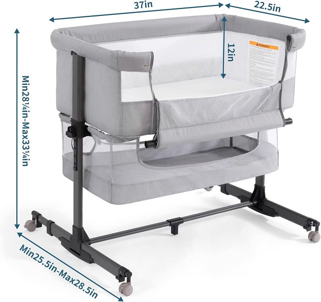Ihoming Bassinet Bedside Sleeper - 37" x 22.5" x 28.25" - 33.25" - GREY (MODEL: HB608-1)