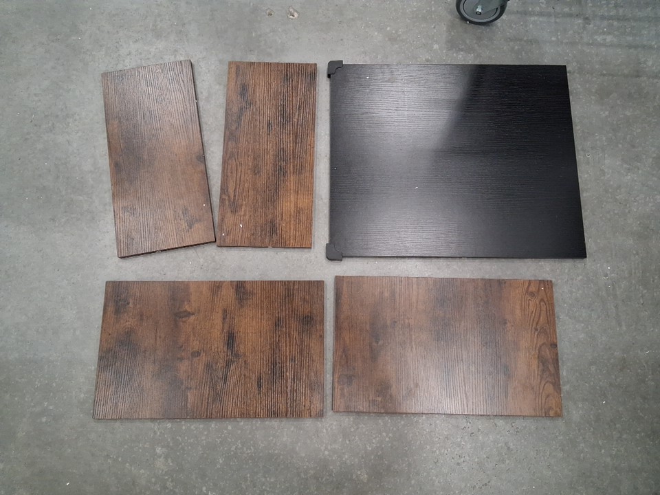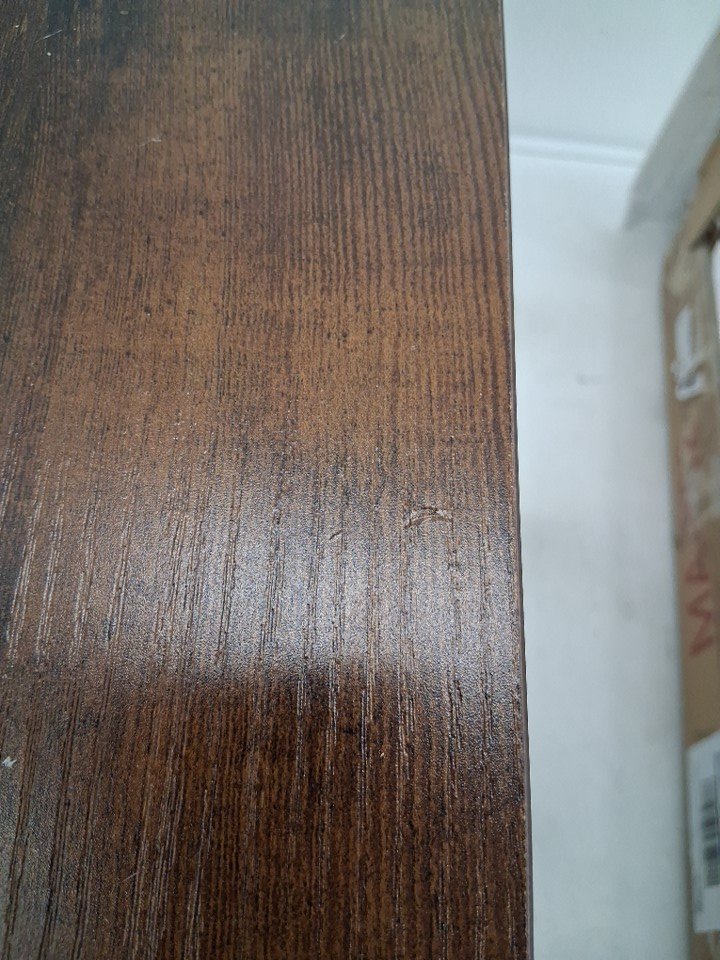 There is a small dent in the wood of one of the storage shelves - see photos.