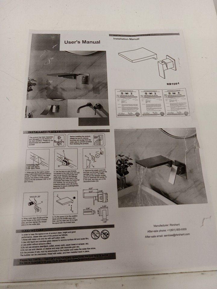Rbrohant Wall-Mounted Waterfall Sink Faucet - 1.2GAL PER Min - brushed gold (Model: rwbf65011-bg)