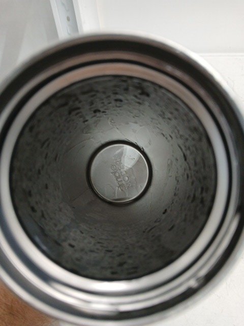 There are a significant amount of dents and scratches, there is also liquid inside of the bottle.