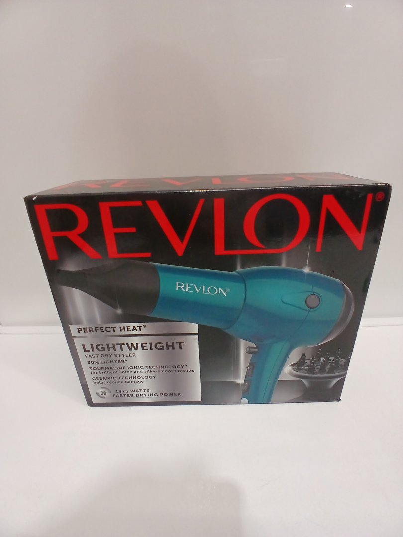 REVLON PERFECT HEAT LIGHTWEIGHT FAST DRY HAIR DRYER WITH CONCENTRATOR & DIFFUSER - 1875W - BLUE (MODEL: RV544BLF)