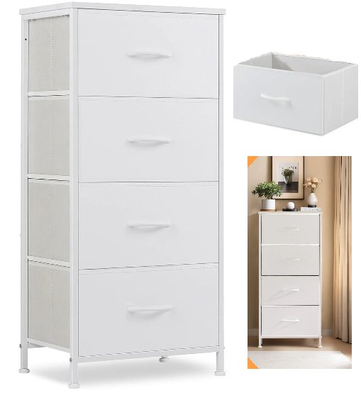 4 Storage Wide Fabric Closet Tower Furniture Dresser - 43.5X32X15CM - White