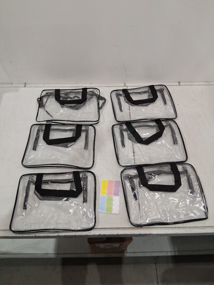 6PK travel makeup/toiletry bags - 9" x 12" x 4" - clear/black