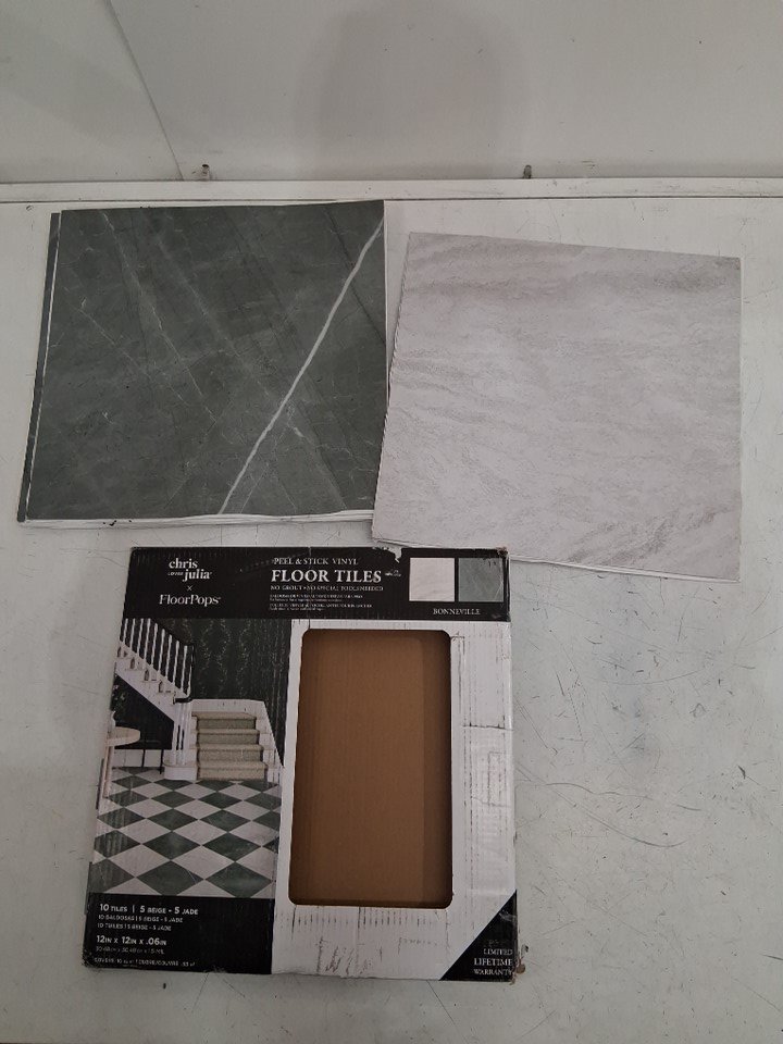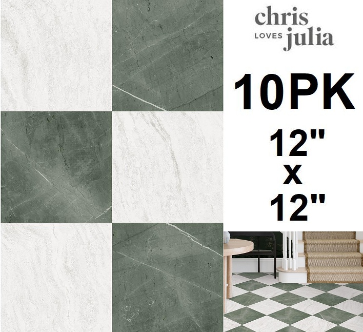 10pk floor pops chris loves julia peel and stick tile - 12" x 12" - Bonneville Jade/white marble (model: ‎FP6332)