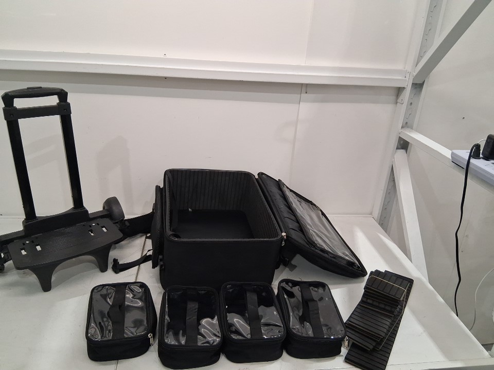 The item has a small stain on the backpack and a few smudged marks on the trolley. See photos for details.