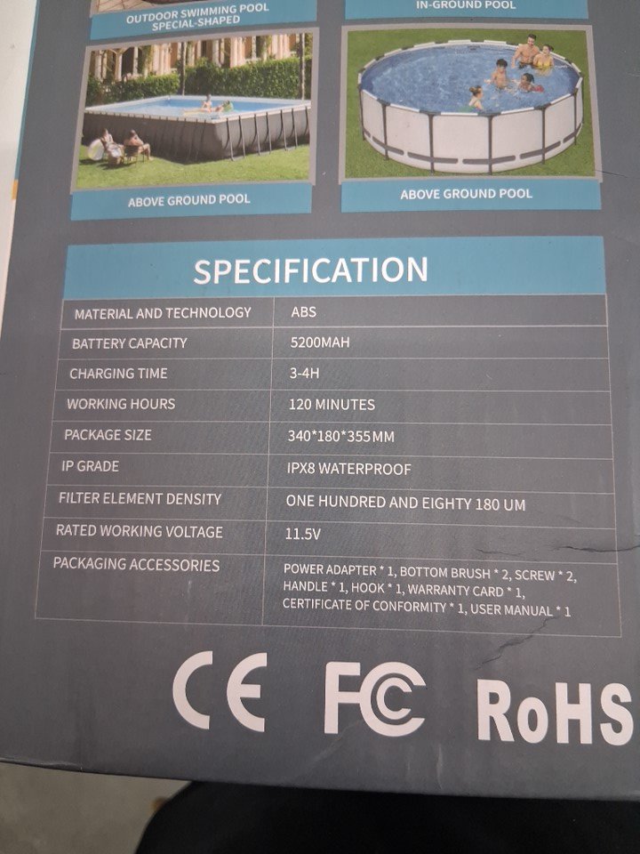 Baopilong automatic cleaning Cordless lightweight Pool Vacuum Dual Drive Motors up to 120min of life - 5200mah battery capacity - white/black (model: PZ0-18)