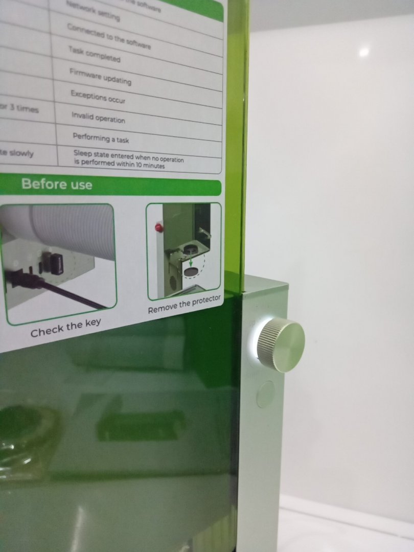 Item has heat marks/smoke stains in the tube and inside by the fan from prior use. Upon testing, the machine kept disconnecting but would automatically reconnect and did not disrupt anything. We are unable to determine if this is a problem with the cable, port, or machine.
