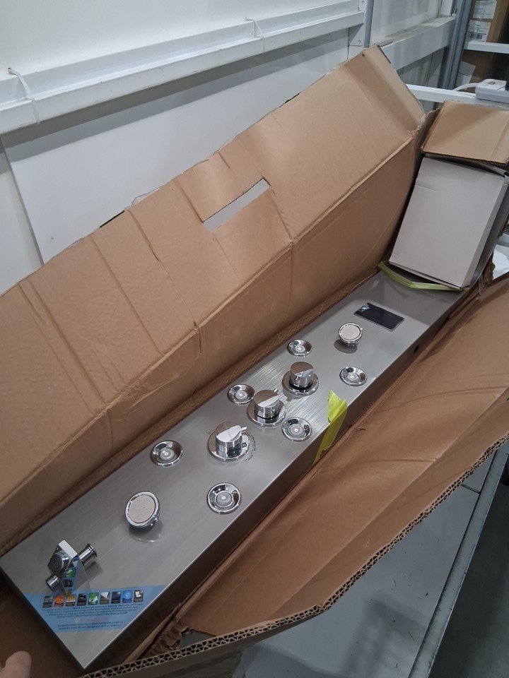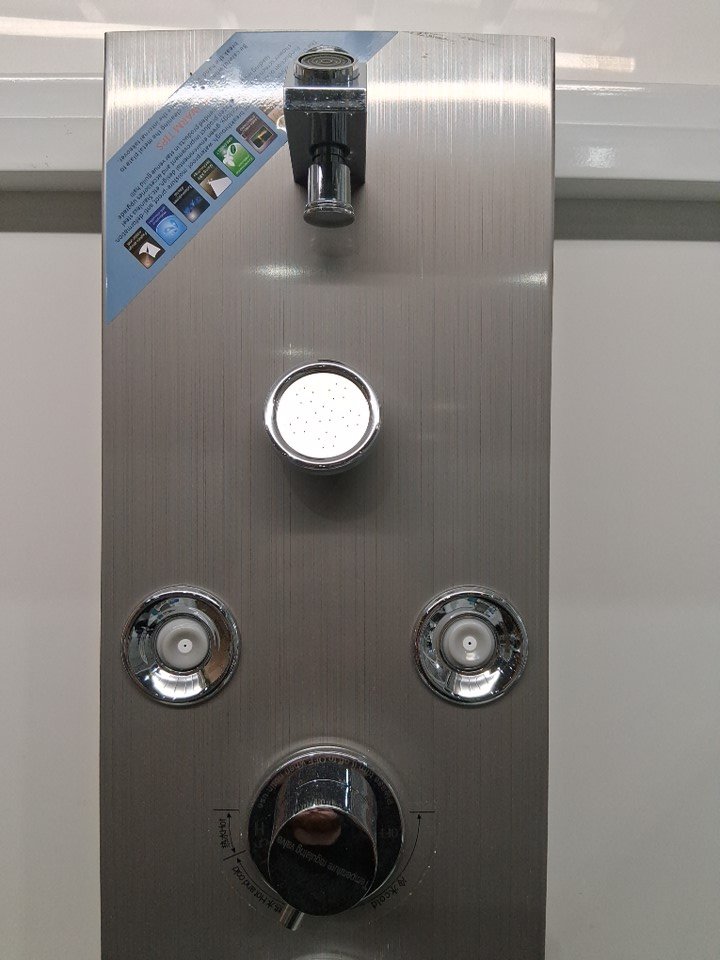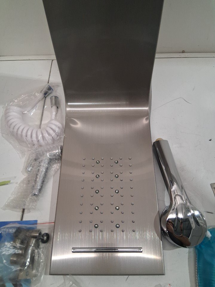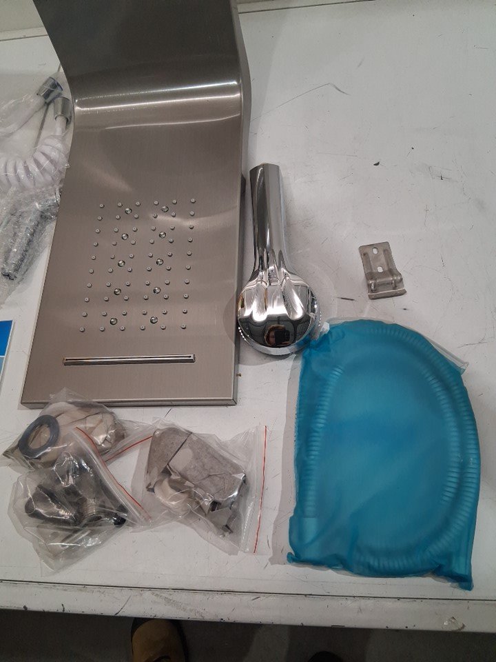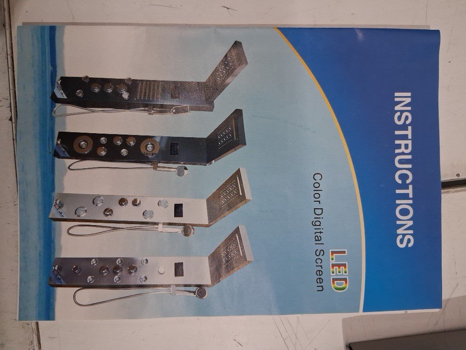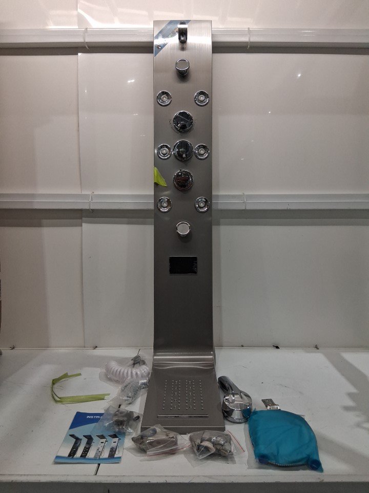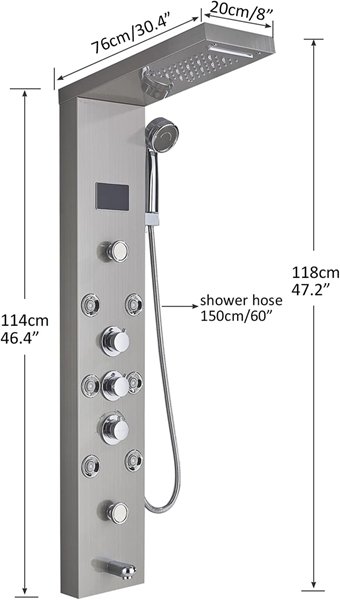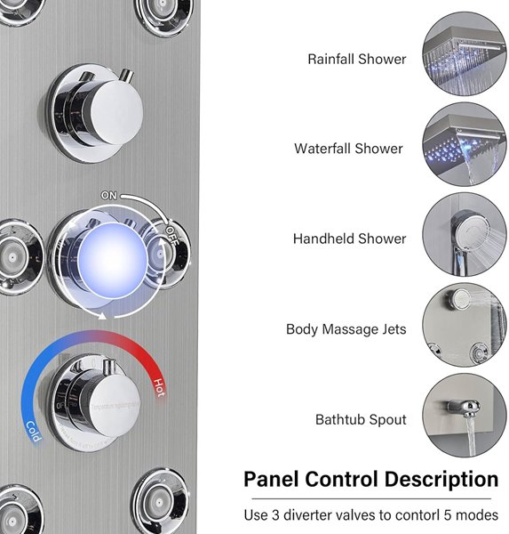 NeierThodore 6-in-1 LED Shower Panel Tower System with Massage Jets Handheld Shower and Tub Spout - 46.4" x 30.4" x 8" - Stainless Steel/Silver