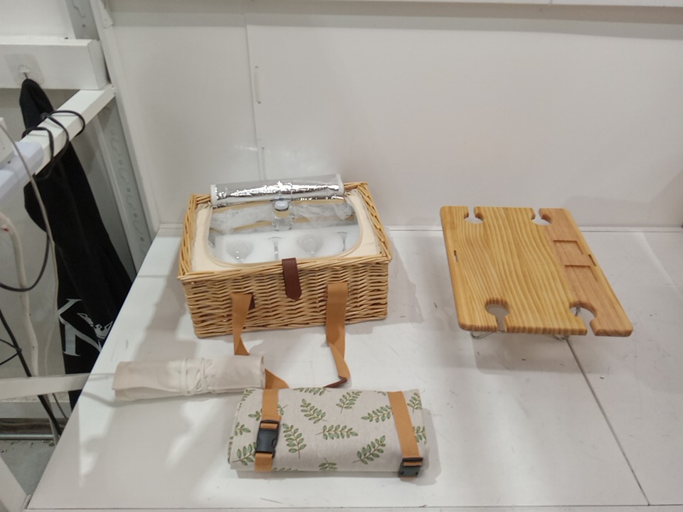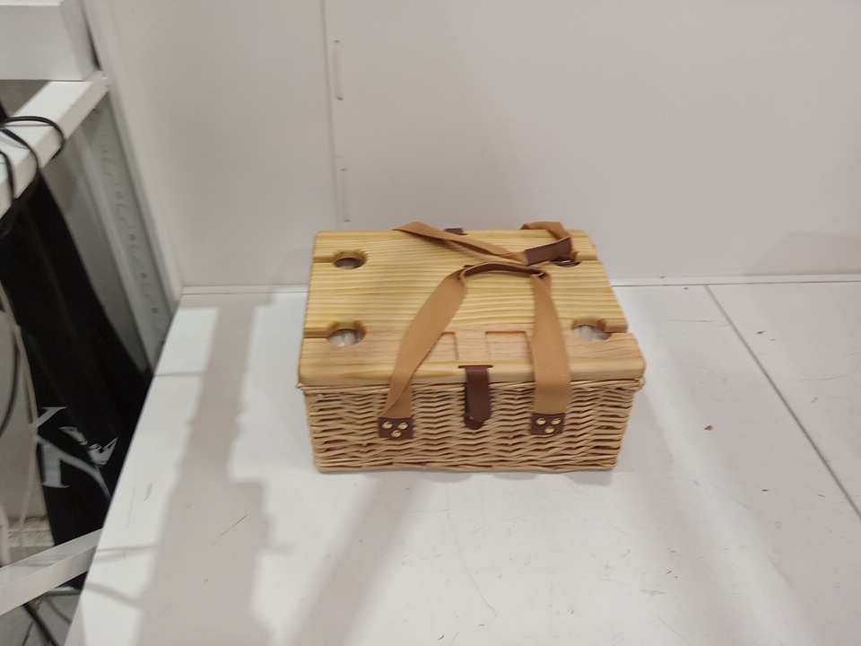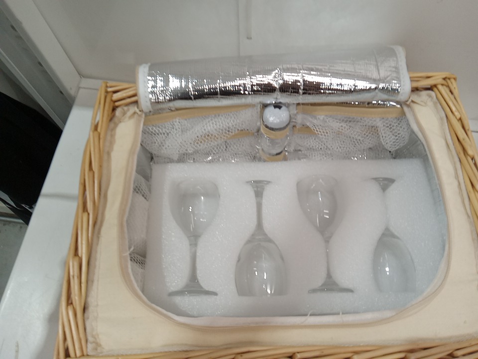 HAP TIM 4-PERSON wicker PICNIC BASKET SET WITH COOLER BAG, FOLDABLE TRAY, CUPS & UTENSILS - BEIGE (MODEL: Y2307)