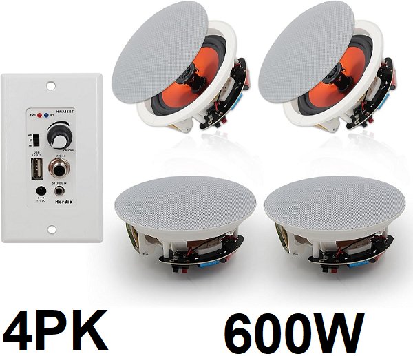 4pk Herdio flush mount app controlled bluetooth speakers - 6.5" / 600W - White - (Model: HCS628-16BT)