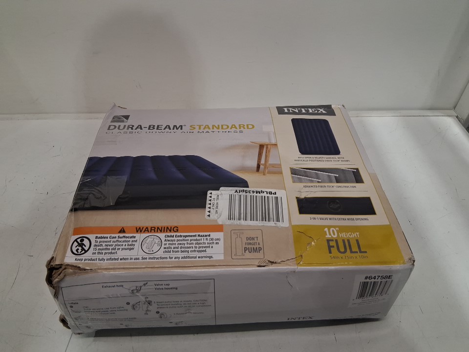 INTEX DURABEAM STANDARD DOWNY AIR MATTRESS - 300LB WEIGHT CAPACITY - 10" THICK - full - blue/GREY (MODEL: 64758E)