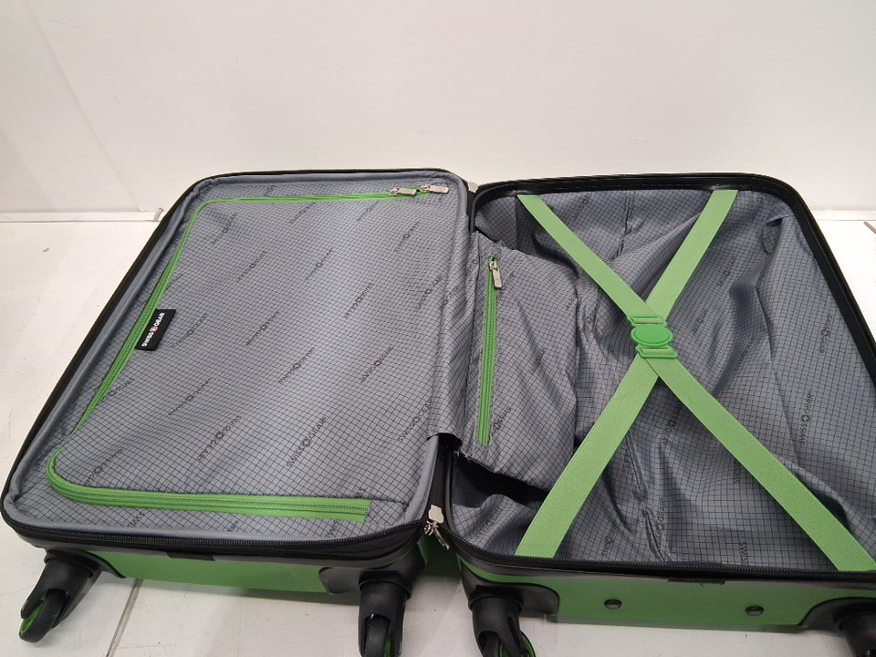There is a stain on the bottom of the front of the luggage, attempted to clean and it did not come out. (see photos)