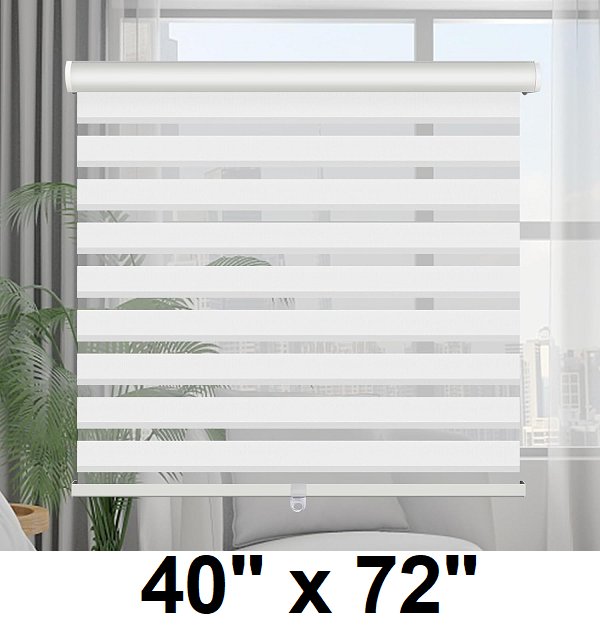 kelixu Cordless Zebra window light filtering Blinds/roller shades with valence cover - 40" x 72" - WHITE (model: dzstbml)