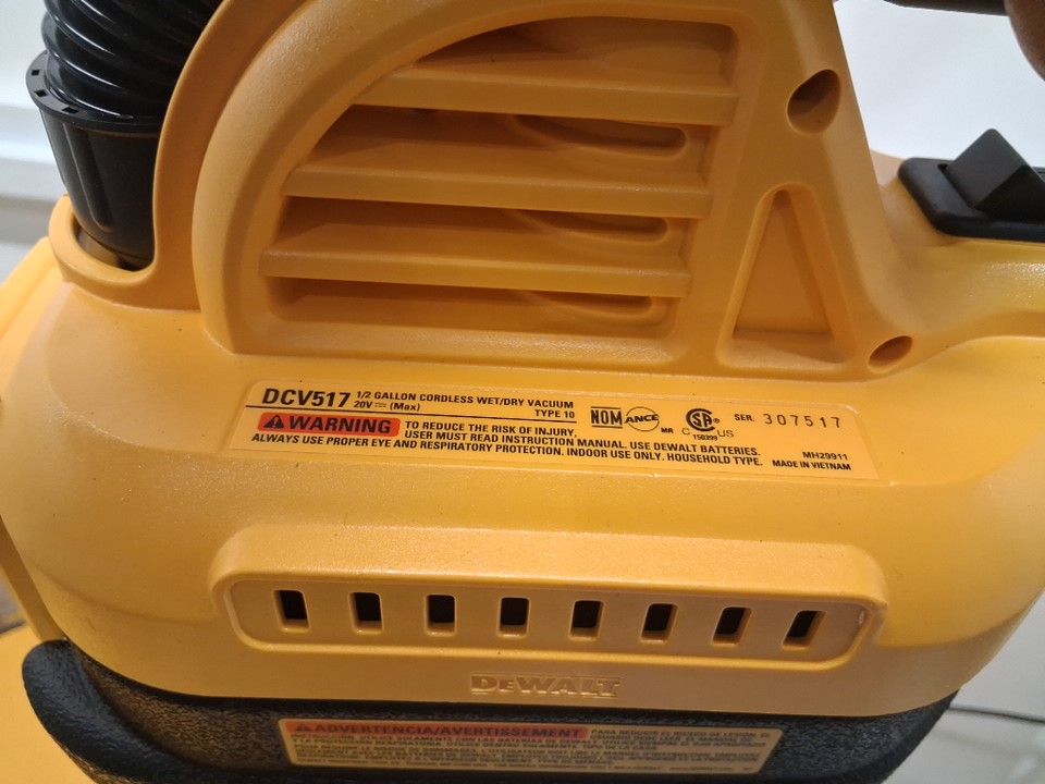 DEWALT 20V WET/DRY PORTABLE CORDLESS VACUUM *TOOL ONLY* - 1/2GAL TANK - YELLOW/BLACK (MODEL: DCV517)