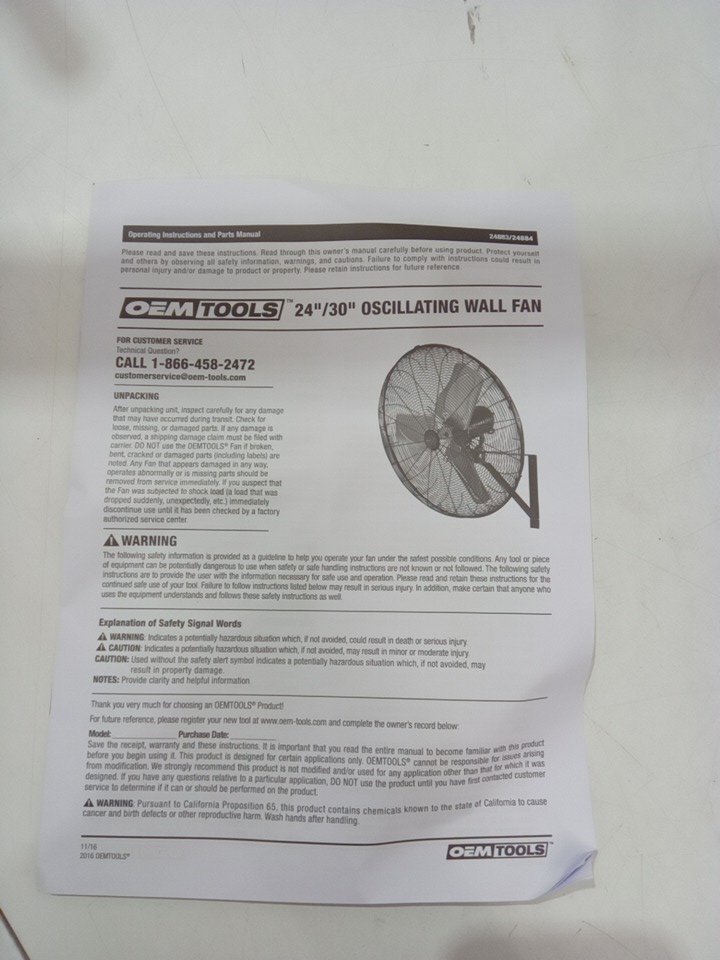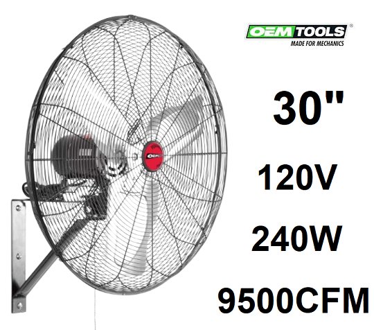 OEMTOOLS Oscillating Wall Fan 9500 CFM Max, 240w, 120v - 30" - black - (model: OEM24884)