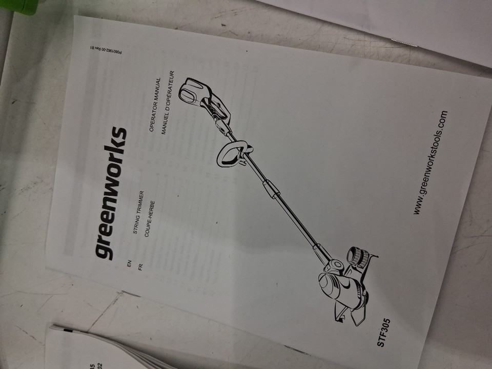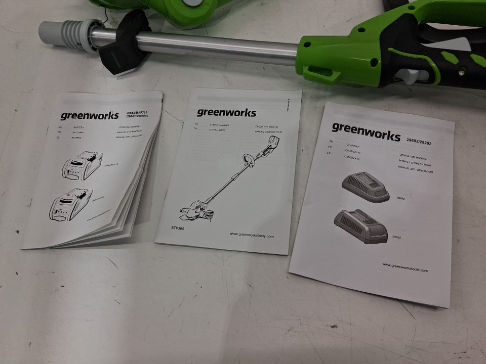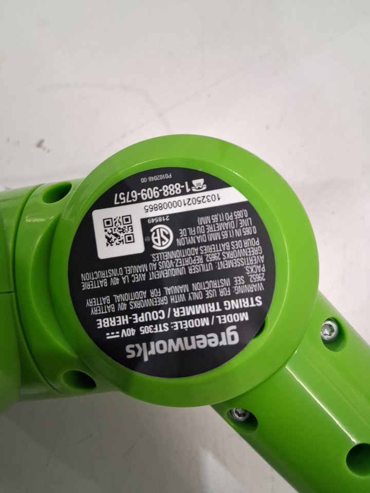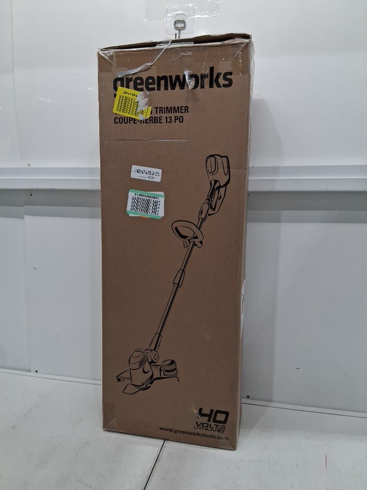 GREENWORKS LITHIUM ION CORDLESS STRING LAWN TRIMMER - 40V - 13" PATH - GREEN (MODEL: STF305)
