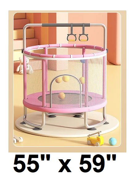 Durable Outdoor Jumping Trampoline with Playing Balls for Kids - 55" X 59" - PINK