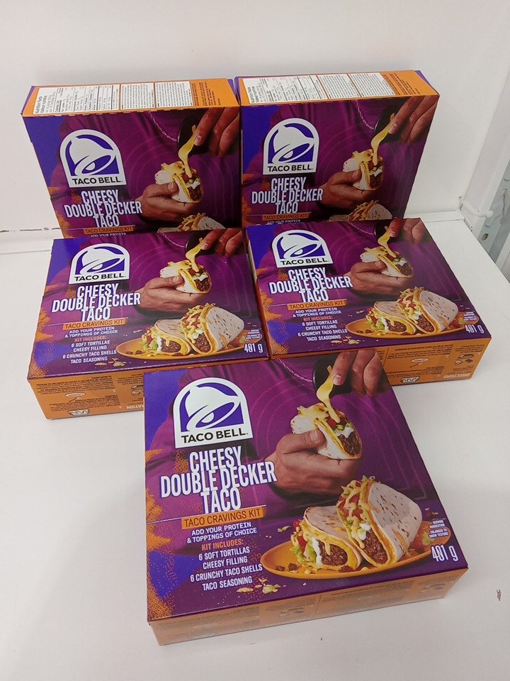 *EXPIRING SOON* 5 (12PK) taco bell cheesy double decker taco cravings kit - 6 soft & 6 hard tortillas - 401g / box