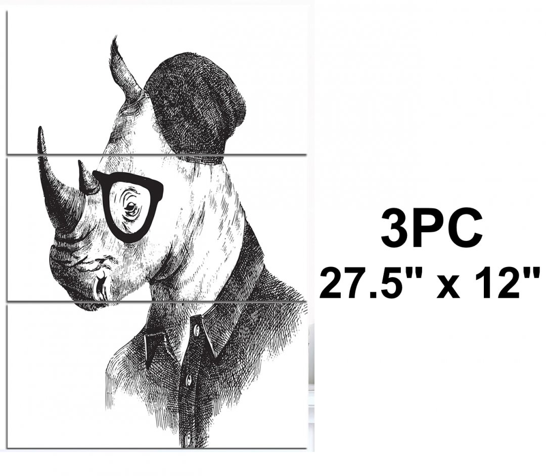 3pc Hipster Rhinoceros Glasses Vintage wall art - 27.5" x 12 " - black white