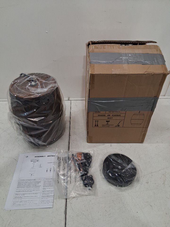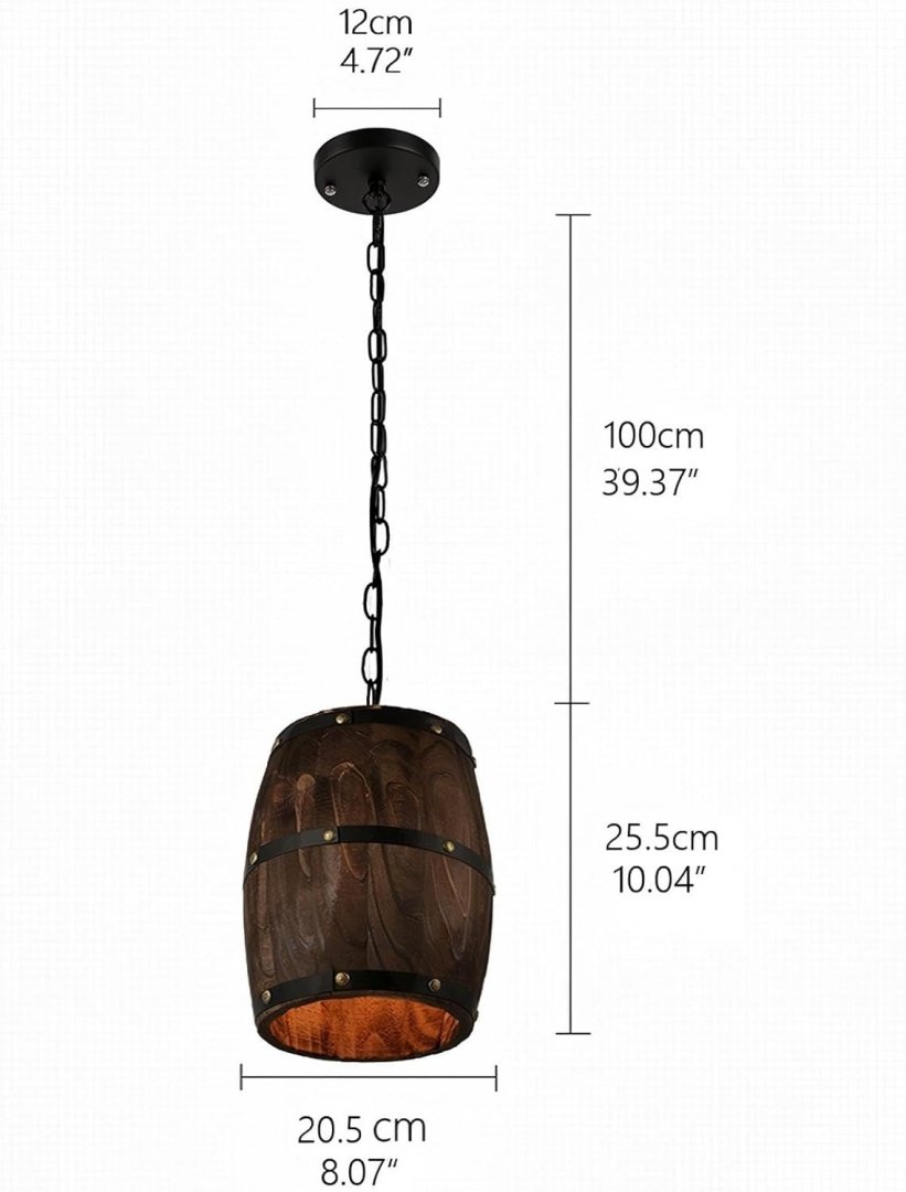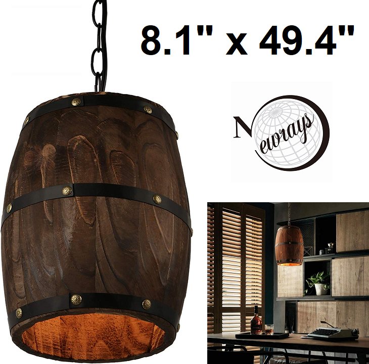 Newrays adjustable height Antique Wood Wine Barrel hanging Pendant light - 8.1" x 10" barrel - 36.6" chain/cord - e26 bulb base - brown/black (model: h27)