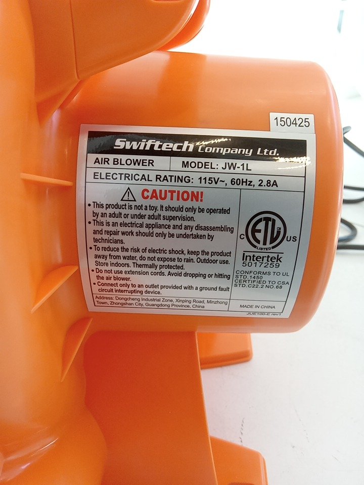 swiftech company ltd. Inflatable Bounce House and Water Slide Blower - 115V - 60HZ - ORANGE (MODEL: JW-1L)