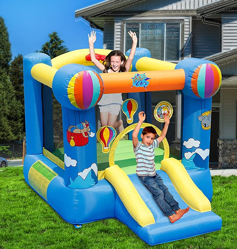 ACTION AIR Bounce House Inflatable Castle with Air Blower, Jumping Castle with Slide, for Outdoor and Indoor, Durable Sewn with Extra Thick Material, Idea for Kids - 9FT x7FT - MULTICOLOR (9070N)