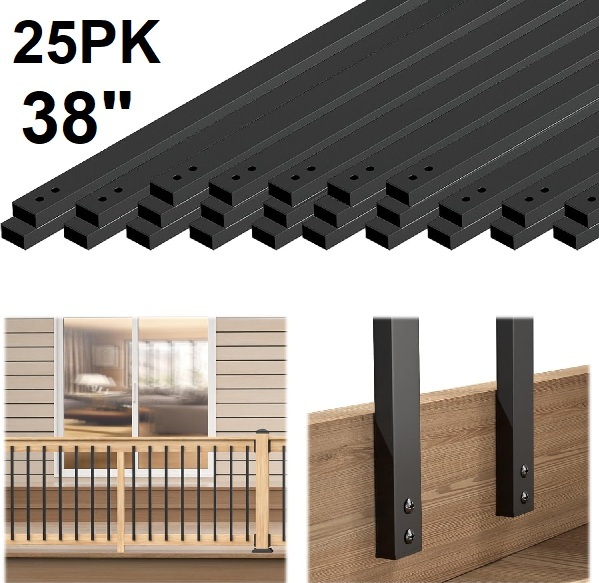 25pk muzata Rectangular metal Deck spindle Railing Balusters - 38" - black (model: wt35)