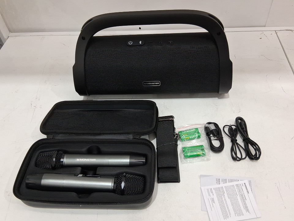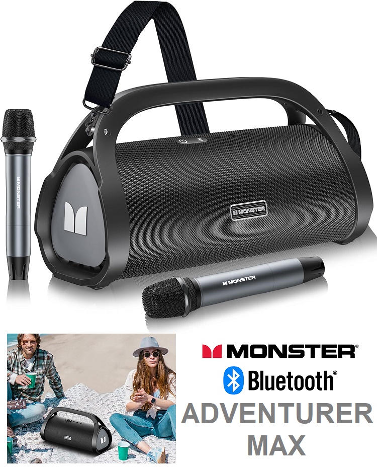 Monster Adventurer Max Portable waterproof Bluetooth Speaker system with 2 microphones - Black/Silver (Model: MS22101)