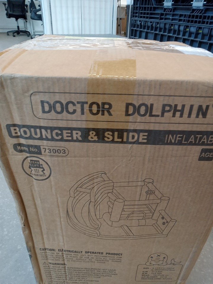 Doctor Dolphin Inflatable Water Bounce House Water Slide Park with Climbing Walls for Kids - 12ft x 7ft - Multi Color (Model: 73003)