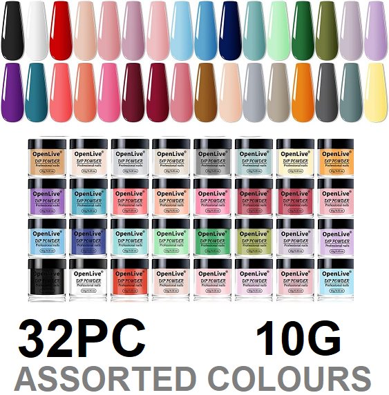 32PC OPENLIVE NAIL DIP POWDERS FOR MANICURES, - 10g each - assorted colours