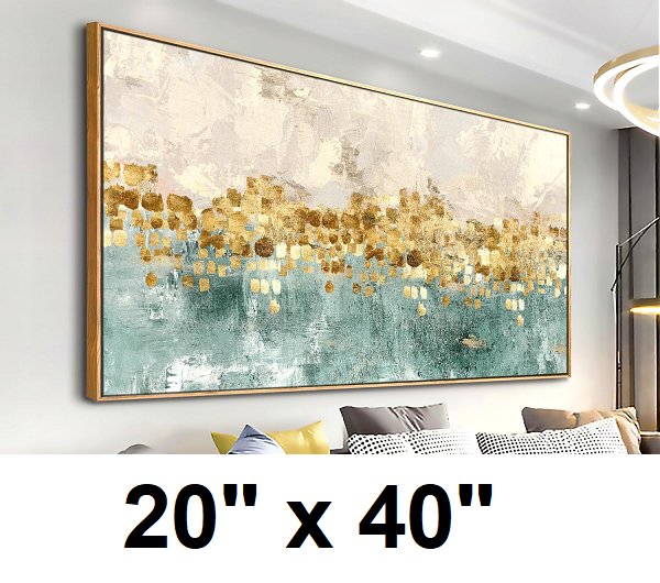 YOUKUART Abstract Fantasy Wall Art Canvas WITH WOODEN FramE - 20" x 40" - BLUE / WHITE / GOLD