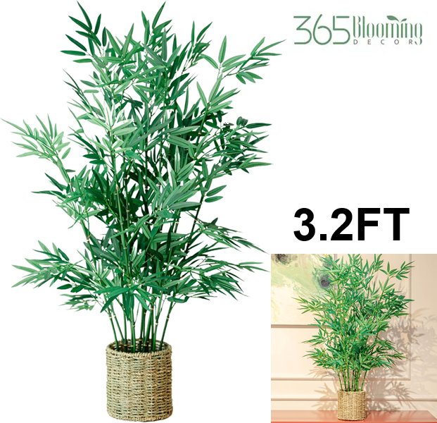 365 Blooming Decor Artificial Bamboo Silk Tree in Handmade Seagrass Pot - 3.2FT - GREEN/CREAM